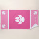 Cute design for dog lovers and dog owners featuring Destei's white dog paw print silhouettes on a pink background colour. There is also a personalizable text area for a name whether you wish it to read your name or your pet's name, for example. The middle has a large white dog paw print shape while each corner has a smaller paw print on it.