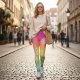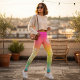 White Doily Lace Mandalas On A Rainbow Ombre Leggings