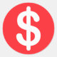 Stickers featuring a white dollar sign on a red background. Available in many colours.