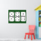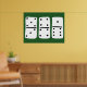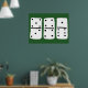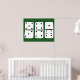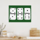 This simple modern design poster features hand-drawn style illustrations of three domino tiles in white with black dots and printing on them set against a green background.