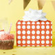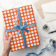A wrapping paper designed with a white dot pattern on a bright orange background. Customize the bright orange background among other options.