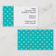 White dots, Teal Polka Dot Pattern. Business Card