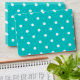 A pattern of polka dots in a nice turquoise - teal colour with white spots.