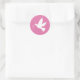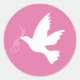 Simple single white dove with pink ribbons pink sticker. Ideal to embellish weddding favours or other reglious or dove themed events.  Part of the white dove on pink wedding stationary set. Designed by Sarah Trett. www.sarahtrett.com for www.mylittleedenweddings.com