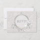 Elegant and stylish RSVP wedding cards with two cute white flying doves sitting on a beautiful ornate silver frame with lace and pearls on a chic white paisley lace digital image background. These glamourous invites are decorated on both sides. Beautiful, chic, trendy, modern invitations with a romantic vintage feel Perfect for a spring, summer, fall / autumn or winter wedding. Pearls and lace mat by ©Hazel Kinvig-Paul www.design-a-dream.co.uk PLEASE NOTE: All invitations on Zazzle have flat printed images. Text, font and colour of font are all customisable. I have matching products in my store. If you need assistance customising your product please contact me through my store and I will be happy to help.