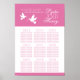 Part of the wedding set white doves with purple ribbons. Edit this wedding seating table chart with your own seating arrangements and guests names. Perfect for those who like simplicity and romance. Ideal for both church, country style, garden and simple registery weddings. Uniquely designed by Sarah Trett.
