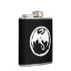 White Dragon black wrapped flask is for thirsty roleplay gamers, fantasy fans, martial artists, monster fans, Pagans, Sword & Sorcery fans, reenactors, cosplayers, dragon collectors, or drinkers who simply like dragons. White Dragon is Steamy Raimon original tribal art.