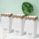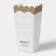 This white wedding dress popcorn favour box features a charming design shaped like a wedding dress, adding a unique touch to your celebration. Perfect for holding popcorn or other treats, it can be personalised with your event details. Ideal for weddings, bridal showers, or engagement parties, it makes a fun and memorable favour for guests. Great for brides, bridesmaids, and wedding party members!