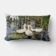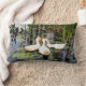 White ducks, lily pads, cattails, lake shore lumbar cushion