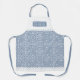 White and dusty blue damask pattern with white scalloped borders apron. On the upper and the bottom parts of the apron there are white bands with scalloped edges. You can personalise it with your name.