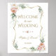 White Dusty Rose Floral Gold Greenery Wedding Sign