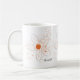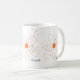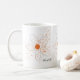 A stylish white background, with modern painted florals with earthy orange coloured spalshes. Personalise and add a name (x3), written with a modern hand lettered style script.