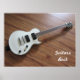 A cool design featuring a white electric guitar accented by a wood background. Perfect for a music room, studio ...