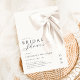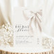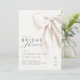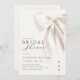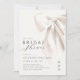 White Elegant Bow Bridal Shower Invitation. This sophisticated invitation features a classic ivory white bow and romantic handwritten script, perfect for a trendy and whimsical bridal shower. The elegant design with an ivory satin ribbon and coquette charm adds a touch of class to your event. Customise the text to match your event's details and create a timeless invitation for your special day.