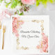 White Elegant Rose Flower Gold Quinceañera Napkins with a refined gold frame design. Perfect for a sweet fifteen, this customisable template can be personalised in Spanish or English for a timeless, feminine touch.