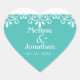 White Elegant Swirls Wedding Save the Date Teal Heart Sticker