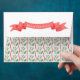 This cute White Elephant envelope features a watercolor elephant design with a festive holly border. The back of the invitation has a vertical holly pattern with a red Merry Christmas banner on the flap. The inside of the envelope has an all over holly pattern.