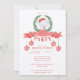 This cute White Elephant gift exchange invitation features a watercolor elephant peeking out from a Christmas wreath. The centre of the invitation has all the party details in red on a bright white background. The time and the place are highlighted on green and red balloons. The back of the invitation has a vertical holly pattern.