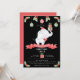This cute White Elephant gift exchange invitation features a watercolor elephant balancing presents on his trunk. Below the elephant is a red banner that says "White Elephant" in a white font. The lower half of the invitation has all the party details in white on a black background. The back of the invitation has a coordinating red background.