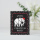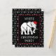 elephant wearing a Christmas hat and white text in a black frame. The back