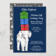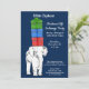 Invitation with a large white elephant drawing with colourful gifts stacked on top of his or her head. Grey Christmas present pattern on the back. See all my stores at https://bit.ly/SandyspiderStores