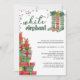 White Elephant gift exchange party with gift-wrapped presents, christmas stockings and string lights. The template is set up for you to customise with your own rules and instructions. Watercolor design with handwritten title and a festive colour palette of red and green. Please browse my Gift Exchange Party collection for alternatives including favourite things, yankee swap and secret santa.