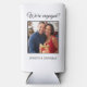 Celebrate your engagement in style with this white slim can cooler, perfectly designed for seltzers, ciders, or tall cans. Featuring a personalised photo, your names, and “We’re engaged!” in elegant script, this drink sleeve is both chic and practical. A modern engagement party favour that your guests will use and cherish long after the event.