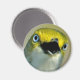 Startling face of a White-eyed Vireo looking at you from a magnet. Very cheerful.