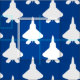White F-22 Raptor Fighter Jet Pattern on Blue Fabric