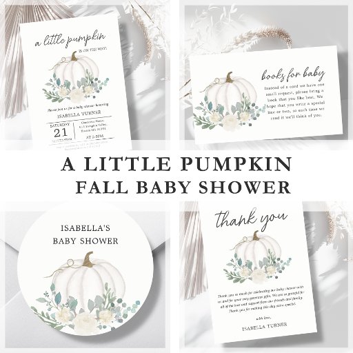 White Fall Pumpkin Baby Shower Thank You Card