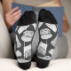 White fast food icons. Seamless pattern. Custom background colour. Custom top stripe colour. Custom text on each sock.