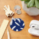 White feather print on dark blue / navy - mixed media graphic design of white feathers, floating on a contrasting, coloured background