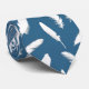 White feather print on medium denim blue - mixed media graphic design of white feathers, floating on a contrasting, coloured background