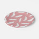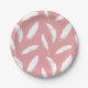 White feather print on shell pink paper plate