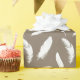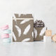 White feather print on medium stone / taupe - mixed media graphic design of white feathers, floating on a contrasting, coloured background