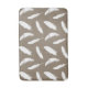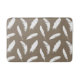 Bathmat in a white feather print on medium taupe tan - mixed media graphic design of white feathers, floating on a contrasting, coloured background