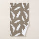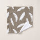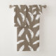 Towel set in a white feather print on medium taupe tan - mixed media graphic design of white feathers, floating on a contrasting, coloured background