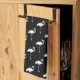 White Flamingo Tropical Flamingos Black Background Tea Towel
