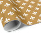 White Fleur-de-lis on Matte Gold Wrapping Paper