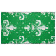 Elegant white fleur-de-lis seamless pattern over a custom green background.