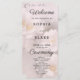 The wedding program details, including the couple's names, wedding date, and venue, are elegantly presented in classic black and grey using a simple block font. This choice ensures clarity and readability, allowing your guests to follow the ceremony proceedings with ease. To infuse an extra dose of charm and romance, the words "Welcome," "Ceremony," and "Wedding Party" are delicately crafted in a pretty decorative script font. This script font not only enhances the program's overall allure but also imbues it with a sense of enchantment, making it a visual delight for your guests.