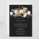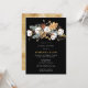 Bold white cotton flowers are nestled in golden brown Autumn fall leaves to create a brilliant floral display at the top of this bridal shower invitation. White and gold text pops against the black background on the front. The back is a rustic gold texture. This white floral bridal shower invitation is part of the Autumn Cotton Leaves collection. It contains many DIY templates that let you easily host a beautiful bridal shower. You should see a link to it on this page. Please contact me, if you don't see the link.