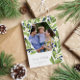 Floral holiday photo card with your photo inside a hexagon shape surrounded by a silver foil frame, sage green greenery, blue berries, and white flowers with Happy Holidays beneath in a silver script. Send your loved ones warm holiday wishes with this beautiful and personalised neutral holiday card no matter how they celebrate. This beautifully floral card features your photo inside a gold foil hexagon frame, surrounded by rustic greenery, white flowers, and blue berries.