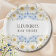 White Floral Blue Hydrangea Garden Baby Shower Paper Plate