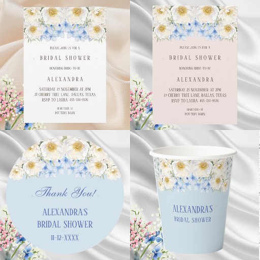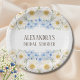 This personalised, Garden Bridal Shower Paper Plate features a beautiful arrangement of soft blue hydrangeas and white peonies against an elegant, crisp white background. Perfect for a Floral Bridal Shower, this stylish plate brings a touch of sophistication to your celebration. Inspired by the timeless elegance of Nancy Meyers' decor and fashion, it’s ideal for a hydrangea bridal shower. With its graceful floral design, this peony bridal shower paper plate adds a charming and refined touch to your event. Beautifully designed and practical, it sets the perfect tone for your special, romantic occasion.