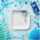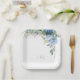 White Floral Blue Hydrangea Initials Wedding Paper Plate