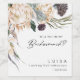 We designed this white floral bridesmaid proposal wine label to complete your rustic dark tropical wedding. With its bohemian watercolor greenery to its modern boho winter flowers, including protea, dahlia, and dried lotus, the design is sure to set off your moody, minimalist green and white theme. Change the text and add a photo to make it your own. Also, make sure to look through the rest of the collection to find coordinating items that will bring your whole wedding together!