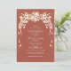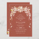 White floral cascading garland terracotta fall wedding Invitation. A beautiful white cascading garland adorns this wedding invitation with gold confetti.