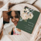 White Floral | Dark Green Casual Photo Wedding Invitation