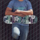 White Floral Dark Purple Teal Blue Green Stripes Skateboard